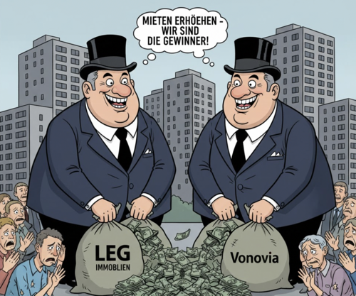 Anstatt die dramatische Steigerung der Wohnungsmieten wirksam zu bremsen, wird durch Wohngeld die Preispolitik vor allem der großen Wohnungsunternehmen mit öffentlichen Mitteln subventioniert. (Karikatur: Gemini)