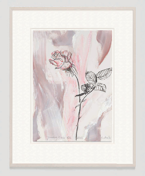 Sabine Moritz „January Rose 22“ Original. Übermalte Druckgrafik (Kohle, Ölkreide und Ölfarbe) aus einer Serie von 50, von Hand bezeichnet, nummeriert, datiert und signiert gerahmt (Ahorn weiß lasiert, Passepartout, UV-Schutzglas) 54 x 42 cm 2.500 Eur