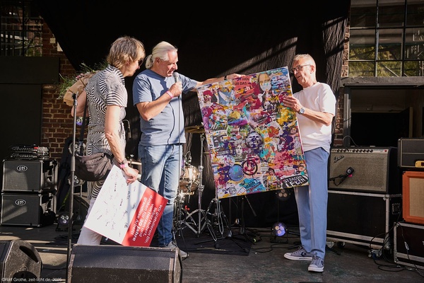 Der WDR berichtete nicht nur mit einer Live-Schalte vom fiftyfifty-Geburtstag, der Sender hatte auch im Archiv gekramt und ein Interview mit Hubert Ostendorf aus dem Jahr 1995 zur Verfügung gestellt. Zur Begeisterung aller wurde es auf der Leinwand gezeigt und schon damals waren durch den Verkauf von Kunsteditions-Uhren die ersten Housing-First-Wohnungen entstanden.