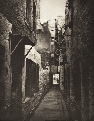 Ein Slum für Arbeiter und deren Familien in Glasgow um 1890. Papst Leo XIII. geißelte schon damals die Zustände dort und anderswo mit den Worten, dass sich „der Mensch kaum über das Tierreich erhebt“. (Foto: Wikipedia)